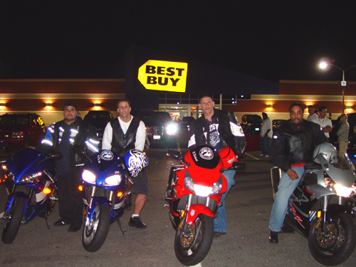 "0260" members hanging out at the weekly bike gathering at Ceasar's Bay in Brooklyn.